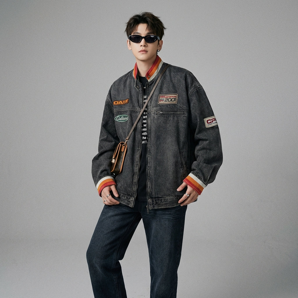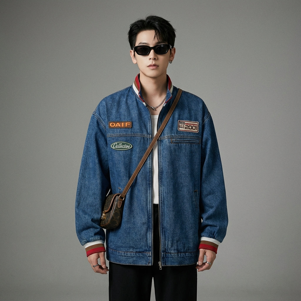 Veste en jean col montant unisexe, mode streetwear coréenne - Taille M