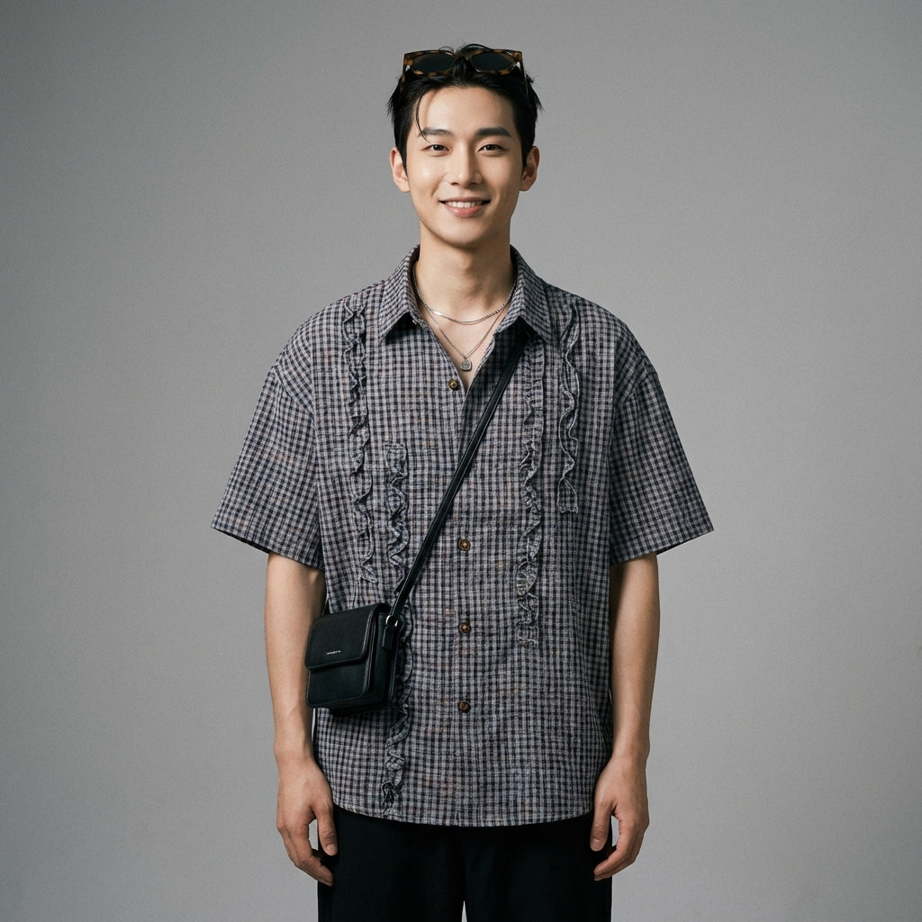 เปลี่ยนลุคให้ดูสบายๆ แต่มีสไตล์ด้วยเสื้อเชิ้ตลายตารางย้อนยุคของเรา ด้วยทรงหลวมและแขนครึ่งศอก ทำให้เป็นตัวเลือกที่สมบูรณ์แบบสำหรับลุคที่ทันสมัยและสวมใส่สบาย! ✨