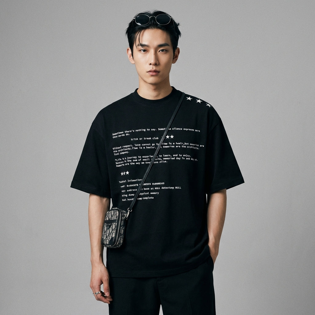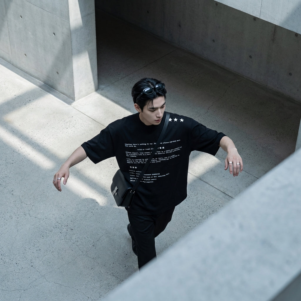 - สไตล์: สตรีทแวร์, K-fashion, ลำลอง เสื้อยืดตัวนี้รวบรวมแก่นแท้ของแฟชั่นคนเมืองและเกาหลี เหมาะสำหรับลุคที่โดดเด่นและมีสไตล์
