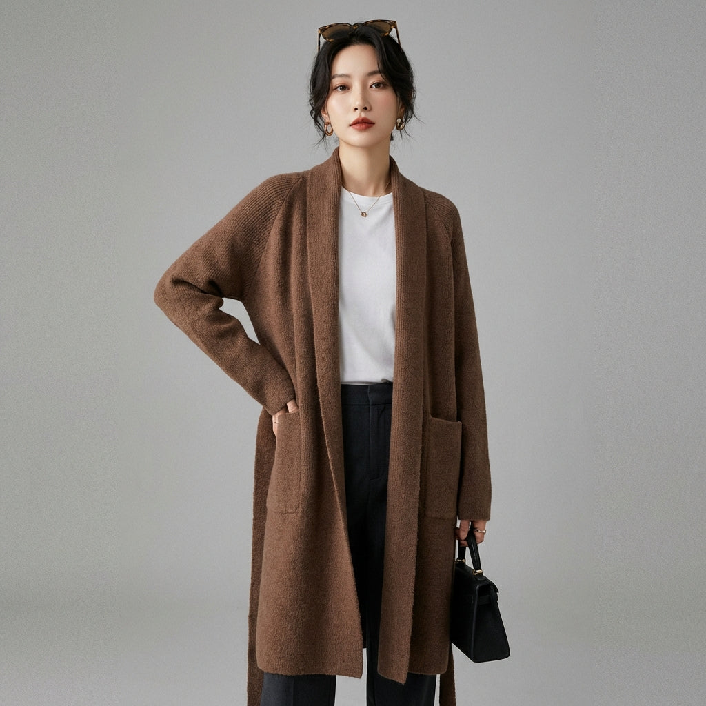 เติมเต็มลุคสบายๆ แต่ยังคงความหรูหราด้วยคาร์ดิแกนถักตัวยาวของเรา โดดเด่นด้วยปกเสื้อแบบมีปกและกระเป๋าที่ใช้งานได้จริง เข็มขัดปรับได้ช่วยเน้นสรีระเพื่อสไตล์ที่หลากหลายและทันสมัย เหมาะสำหรับวันอากาศเย็น! 🍂