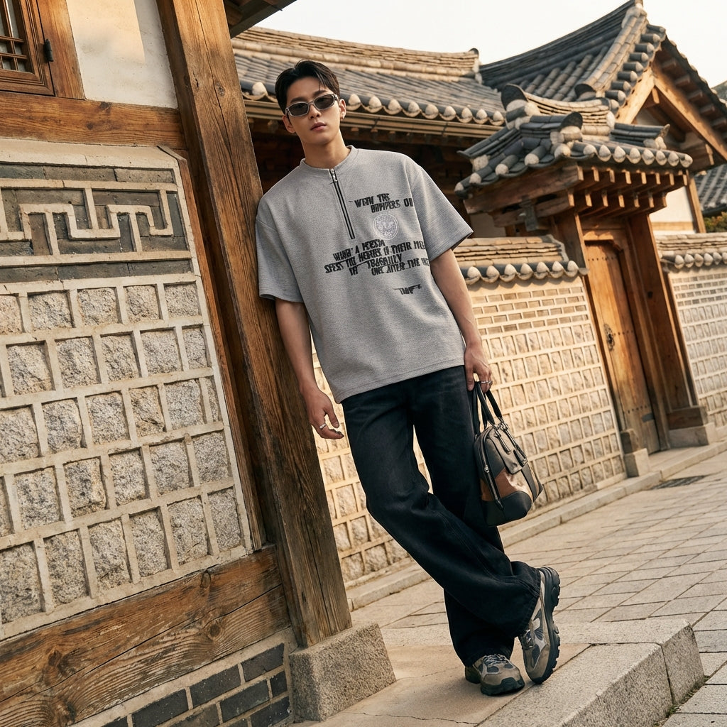 - สไตล์: สตรีทแวร์, เออร์เบิน, อินเทรนด์ เสื้อยืดตัวนี้สะท้อนความสวยงามแบบสบายๆ และทันสมัยของสตรีทแวร์ พร้อมสัมผัสของแฟชั่นเกาหลี