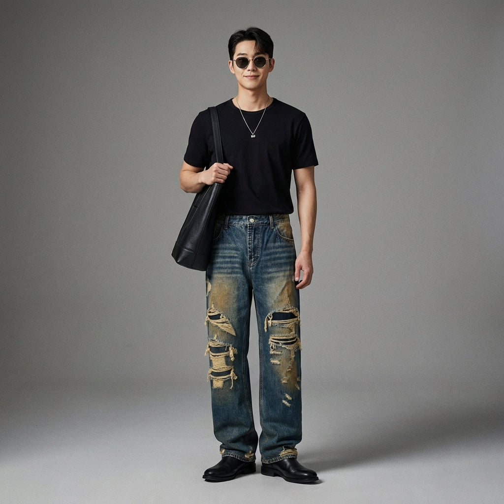 • สไตล์: ย้อนยุค, สตรีทแวร์, เกาหลี กางเกงยีนส์ตัวนี้สะท้อนถึงสไตล์ลำลองและอินเทรนด์ที่ได้รับแรงบันดาลใจจากเทรนด์แฟชั่นเกาหลี
